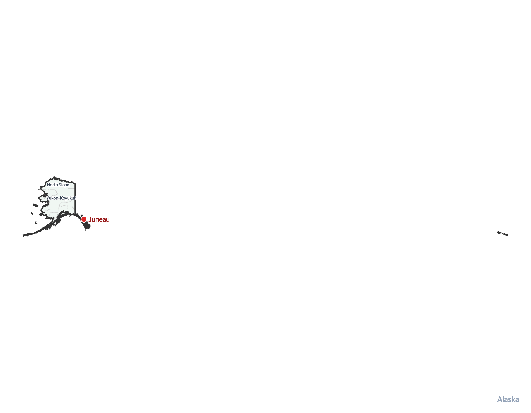 The capital of Alaska is Juneau. It is marked with a red dot on this map.