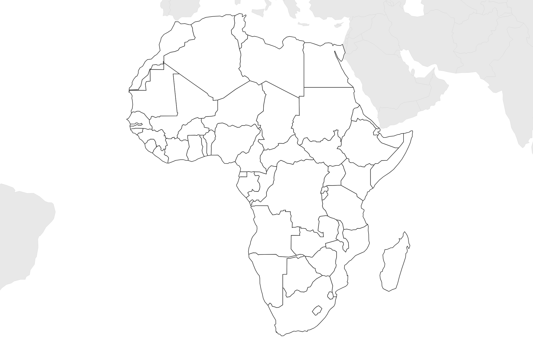 Free printable blank map of Africa with country outlines only. No labels — ideal for geography tests, classroom activities, and educational coloring projects.