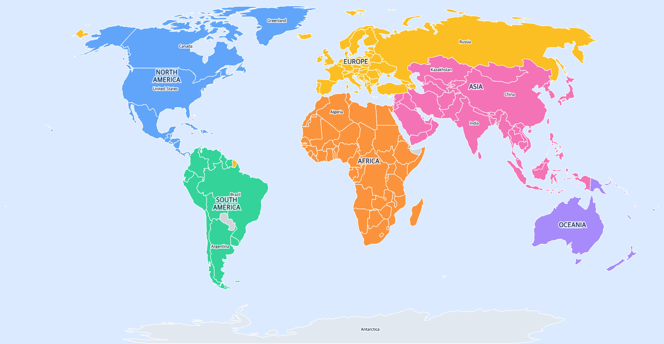 Each continent has its own bright color so young learners can easily see where one region ends and another begins. This makes it much easier for kids to understand world geography.