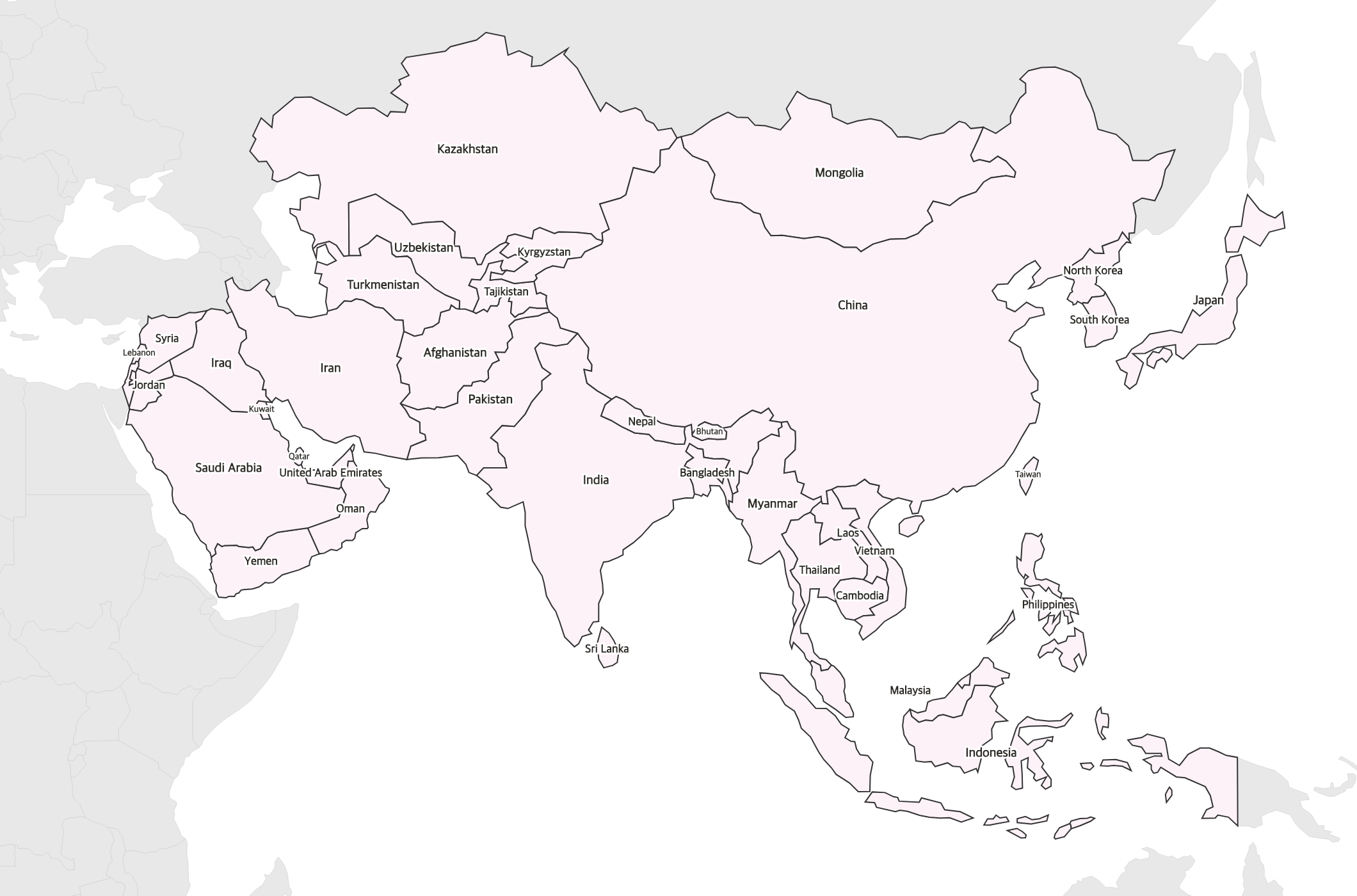 Are all Asian countries labeled?
